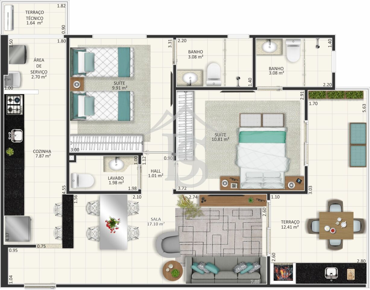 Com 155,836m², essas unidades (106 a 906) proporcionam um lar amplo, ...
