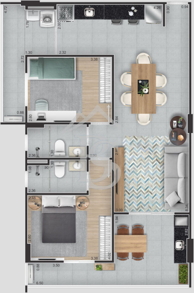 Com 2 dormitórios (1 suíte), sala integrada à sacada, 2 vagas de ga...